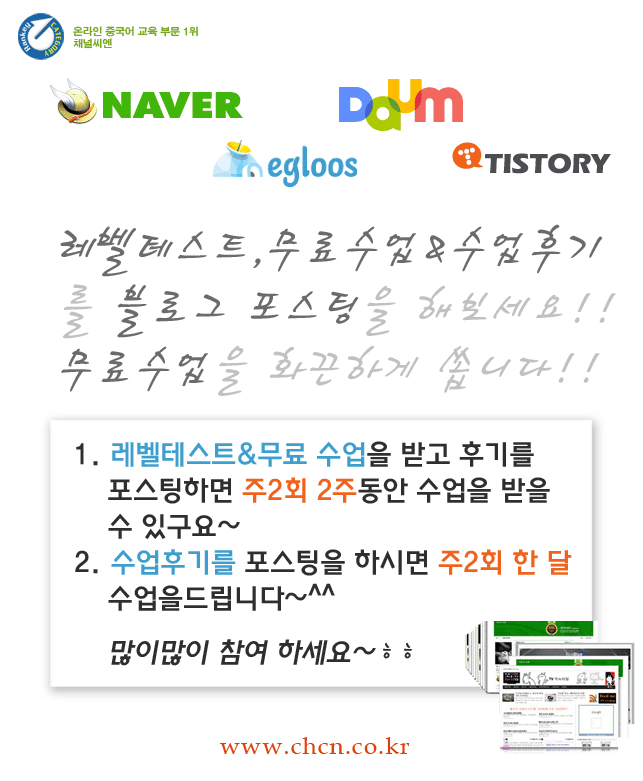채널씨엔 전화중국어에서 블로그 이벤트가 시작되었습니다!!