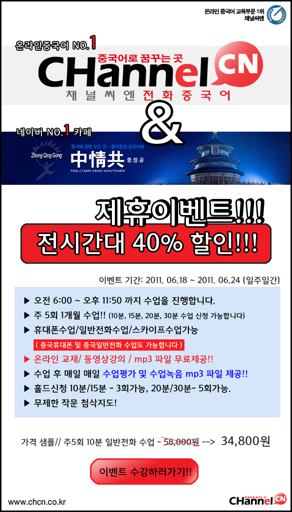 101 낮시간30%할인이벤트!!! 채널씨엔 2011-06-05 6281