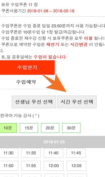 이거 완전 편리해요~ 원래 선생님마다 클릭해서 시간 확인하는게 불편했는데 너무 좋은 기능이네요 :) (2018.01.25 23:18)