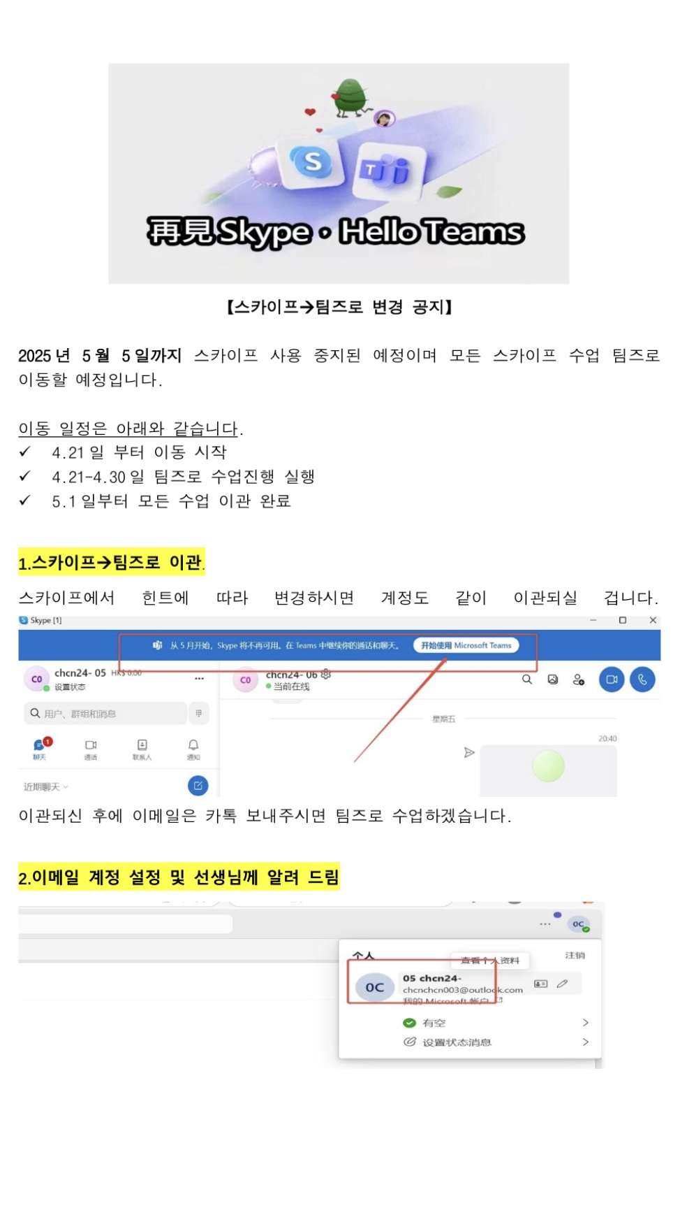 【스카이프→팀즈로 변경 공지】