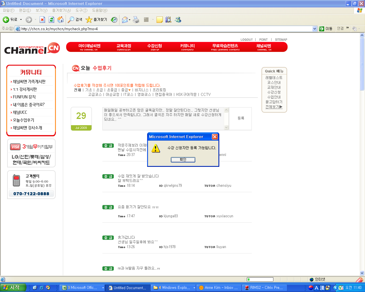 2314 오늘의 수업후기 게시판에.. yo**** 2009-07-29 11:42